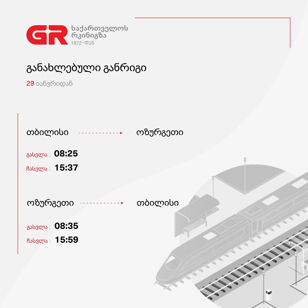 29 იანვრიდან, საქართველოს რკინიგზა თბილისი-ოზურგეთი-თბილისის სამგზავრო მატარებლის განრიგს ცვლის.