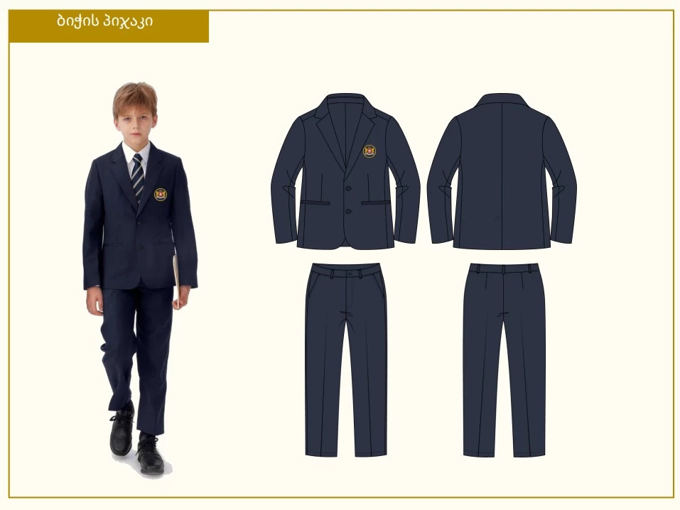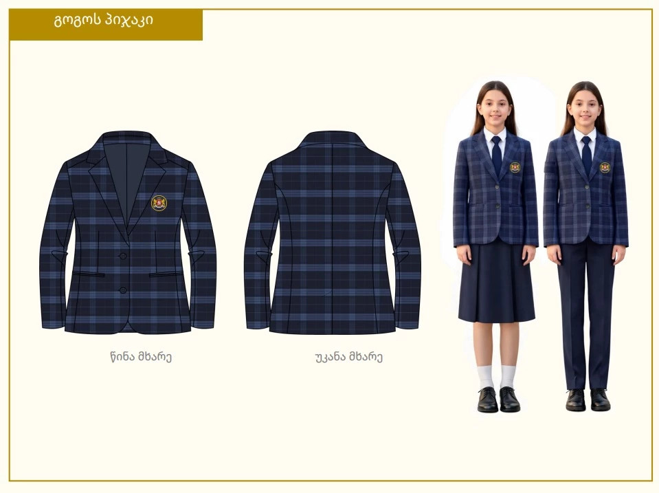 ნაჩვენებია შესაბამისი ესკიზები, თუ როგორი იქნება სასკოლო ფორმის დიზაინი.